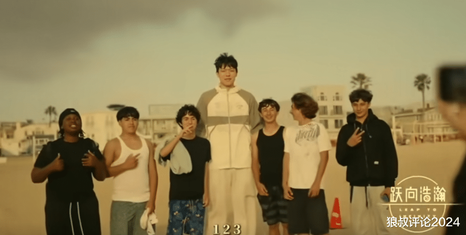 杨瀚森在LA准备选秀期间,与经纪团队在沙滩散步,一群美国男孩正在玩耍,他们看到杨瀚森身材高大,随后就询问是参加什么运动。