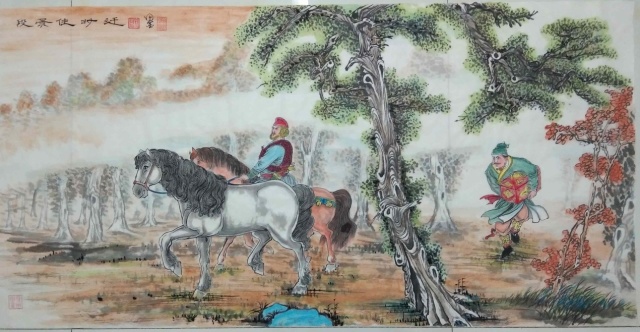 在燕赵大地的苍茫山水间,田金先生以画笔为犁,深耕艺术沃土数十载。他以双大专学历的学识底蕴,将宣师与张家口教育学院的教诲熔铸成独特的艺术语言。他的作品不仅是视觉的盛宴,更是历史的回响,从《释迦牟尼成佛图》的庄严长卷到《抗战英烈马宝玉》的悲壮叙事,每一幅山水人物画都承载着文化的重量,文字注解更赋予其灵魂的深度。