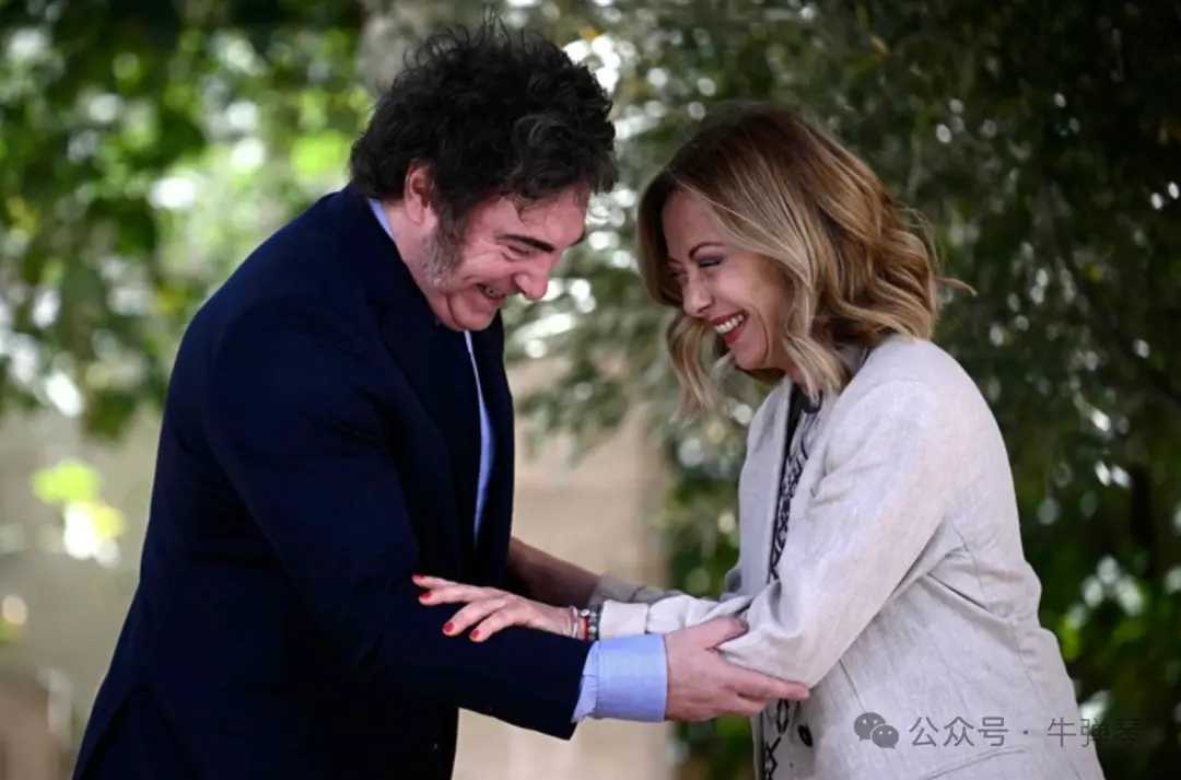 梅洛尼和阿根廷总统米莱一起大笑