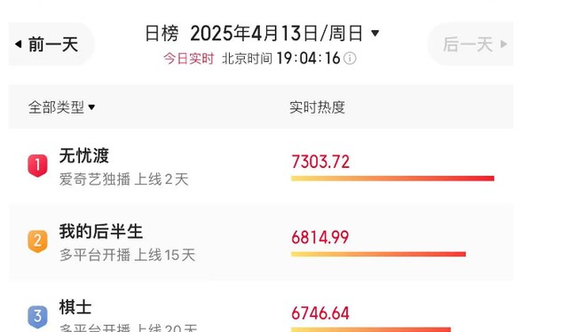 仅播出6集就碾压一众热播剧,就连央视的《我的后半生》也远远甩在身后。