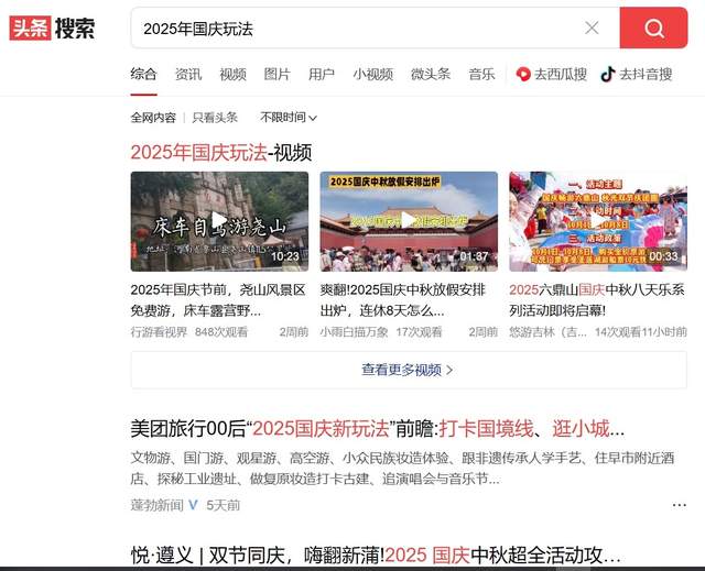 国庆佳节估计已经让你期待很久了吧!可是国庆假期怎么玩?你可能还没有梳理出一个十分清晰的头绪。而要获取与此相关的信息,不妨在运行““今日头条搜索”这一Quicker动作之后弹出的输入框中输入“2025年国庆玩法”这一搜索关键词。