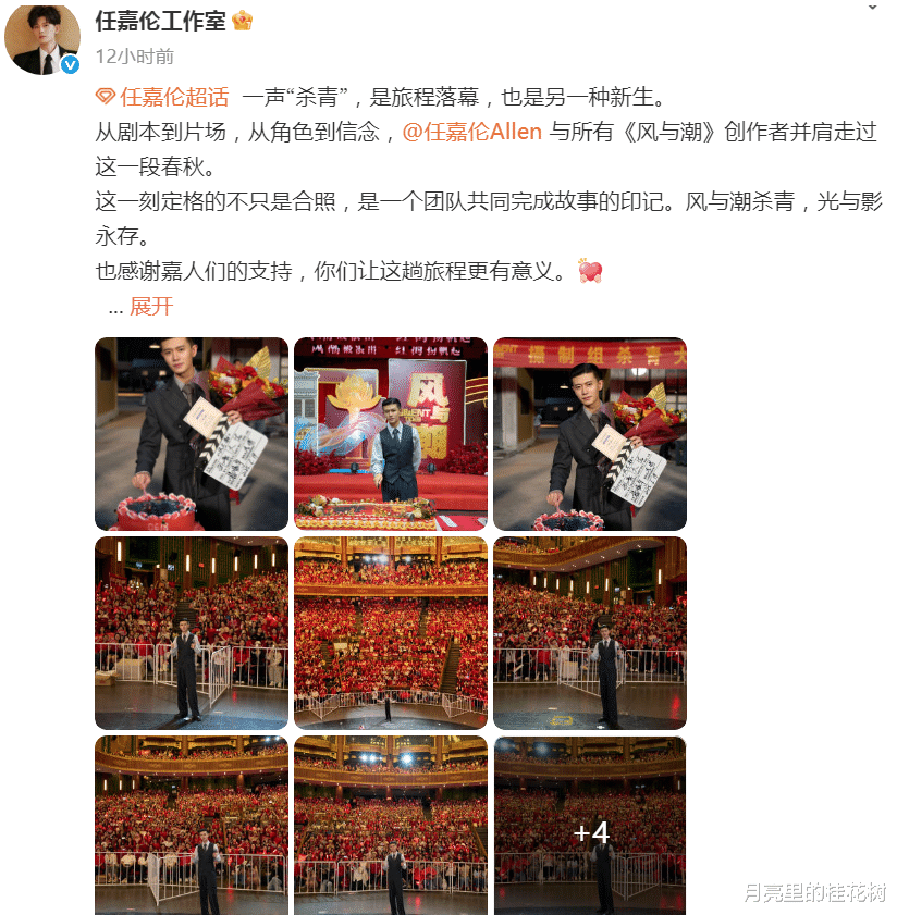 6月18日,任嘉伦工作室发文:一声“杀青”,是旅程落幕,也是另一种新生。从剧本到片场,从角色到信念,任嘉伦与所有《风与潮》创作者并肩走过这一段春秋。满满的13宫格,粉丝们直呼:看不够啊。