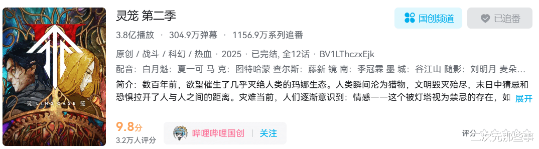 《灵笼 第二季》在B站9.8分、豆瓣8.9分,海外IMDB更是高达9.2分,这说明了什么?说明这个IP已经具备了跨越文化壁垒的顶级品质。