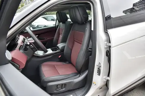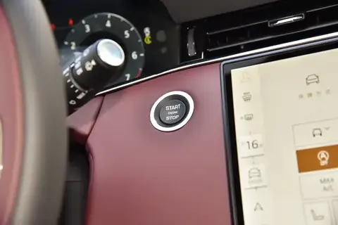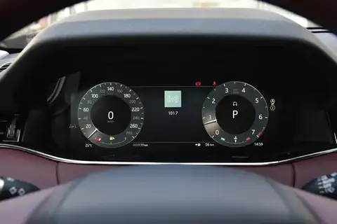 坐进车内,更是能感受到揽胜对豪华的理解,不是堆料的浮夸,而是处处透着细腻的质感。整个座舱几乎都是软包材质包裹,手能摸到的地方,不管是中控台、车门内饰板,还是扶手箱,都是软软糯糯的,完全没有廉价的硬塑料感。我试驾的高配车型是豪华温莎真皮内饰,菱格纹打孔设计不仅看着高级,透气性也特别好,冬天不闷,夏天不烫,搭配檀木黑和薄云色的双色拼接,整个内饰氛围既雅致又温馨。方向盘是双拼色设计,握感饱满,上面的金属按键质感十足,操作起来清脆利落,一点不拖沓。