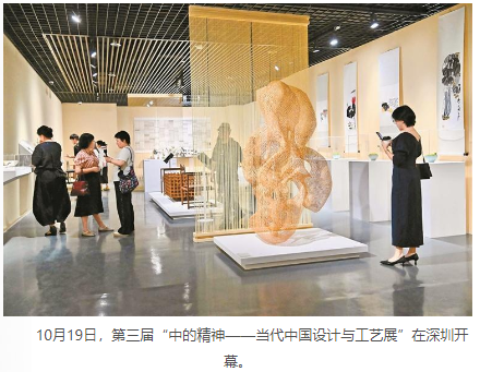 深圳特区报讯(记者 尹春芳/文 胡蕾/图)第三届“中的精神——当代中国设计与工艺展”于10月19日在深圳海上世界文化艺术中心L3花园展馆开幕。本次展览由荣宝斋主办,以“雅的进化”为主题,汇聚27位当代中国设计师、艺术家与非遗代表性传承人的74件(组)作品,以当代设计与工艺语言,探讨“雅”的当代表达与生活化转化。