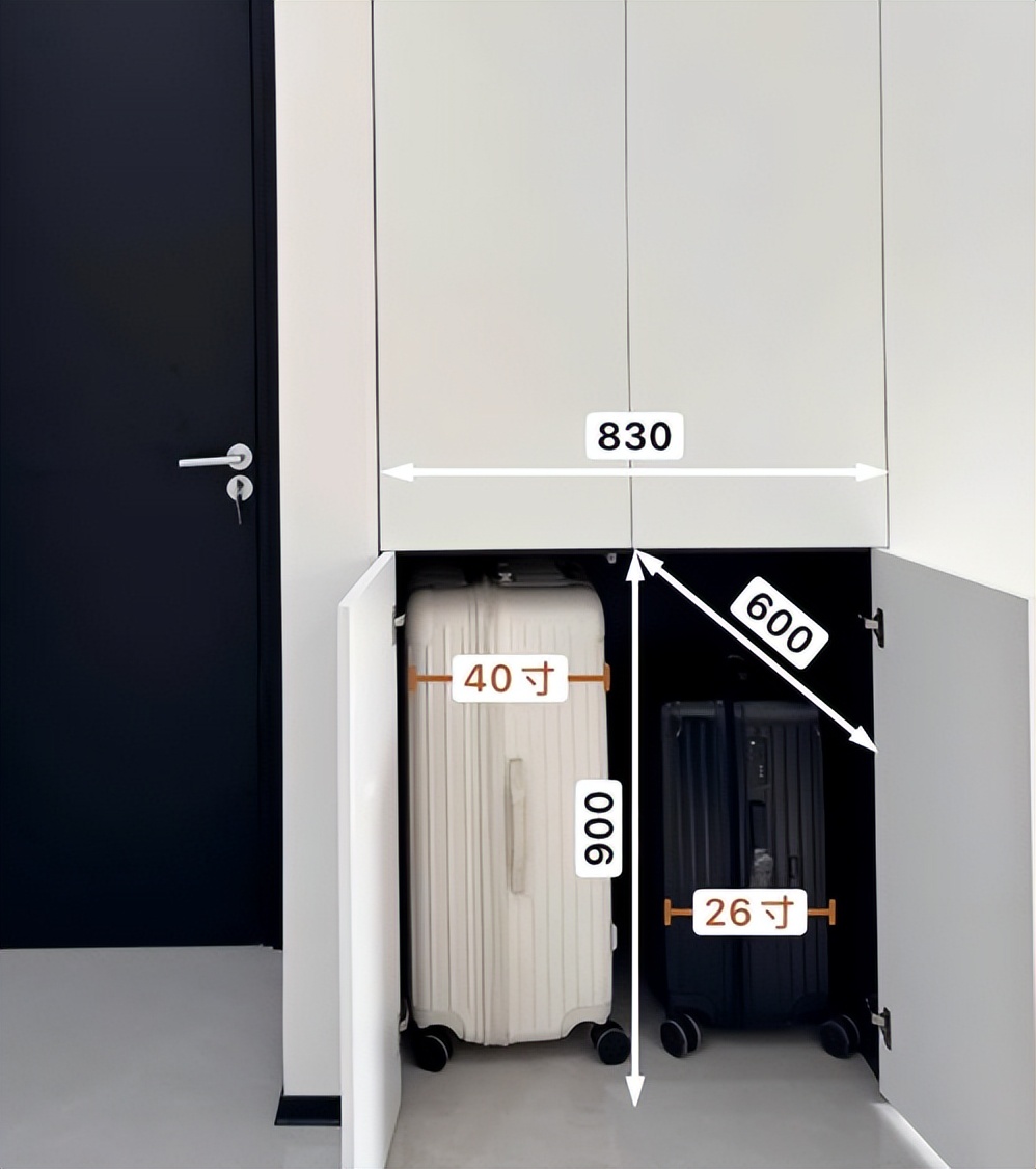 我之前装修的时候也忽略了这些物品的收纳,结果住进去之后,行李箱凳子到处乱放,搞得家里乱糟糟的。