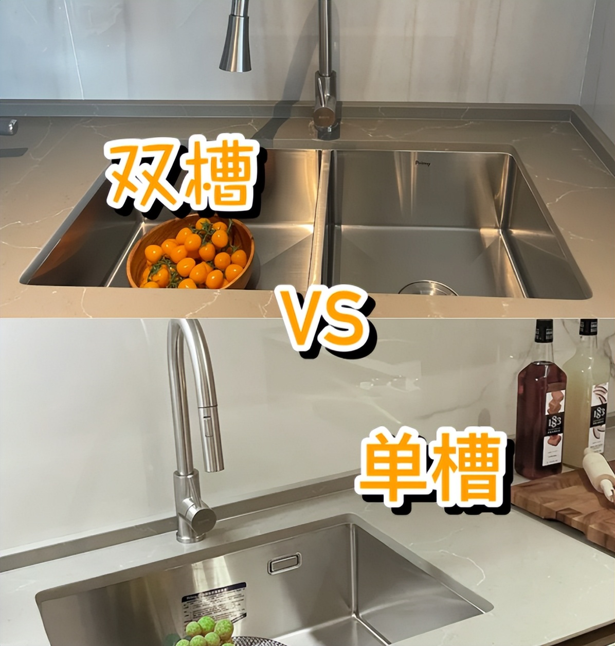 如果你家厨房的灶台空间比较大,那么可以选择双槽,但是双槽的容量一定要大一些,这样可以放下锅具。