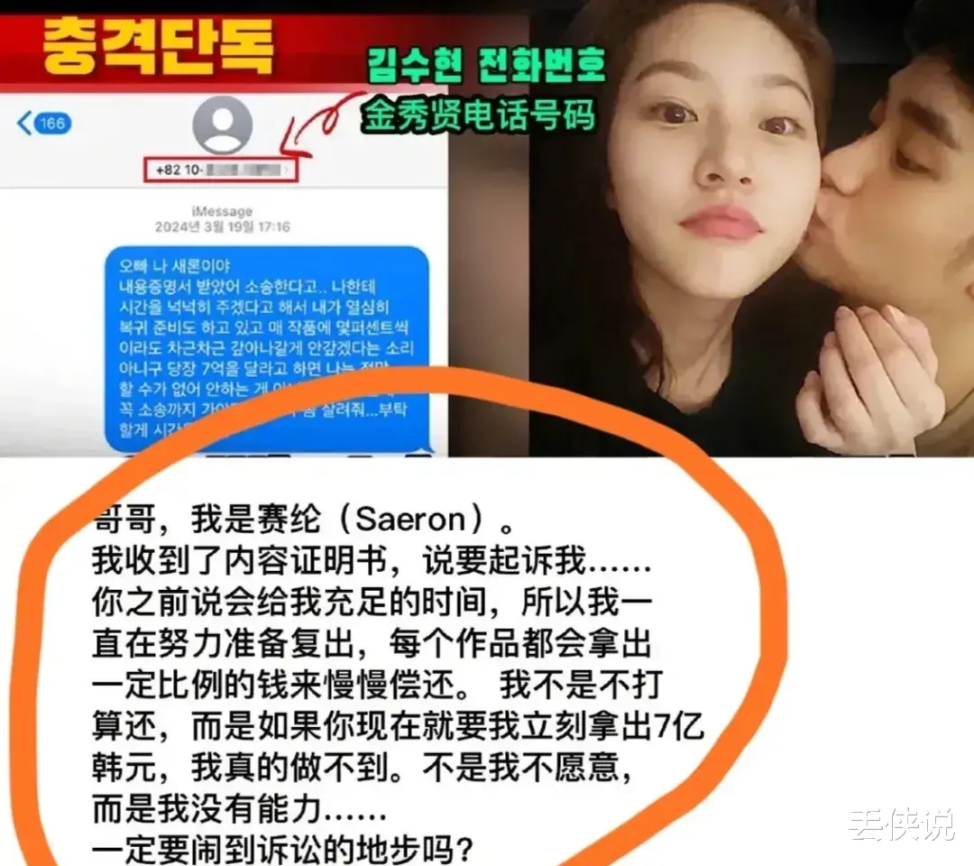 金赛纶哀求分期偿还,却被金秀贤拉黑,连用表姐手机发送的求救短信都被他转给媒体,引发新一轮网暴。