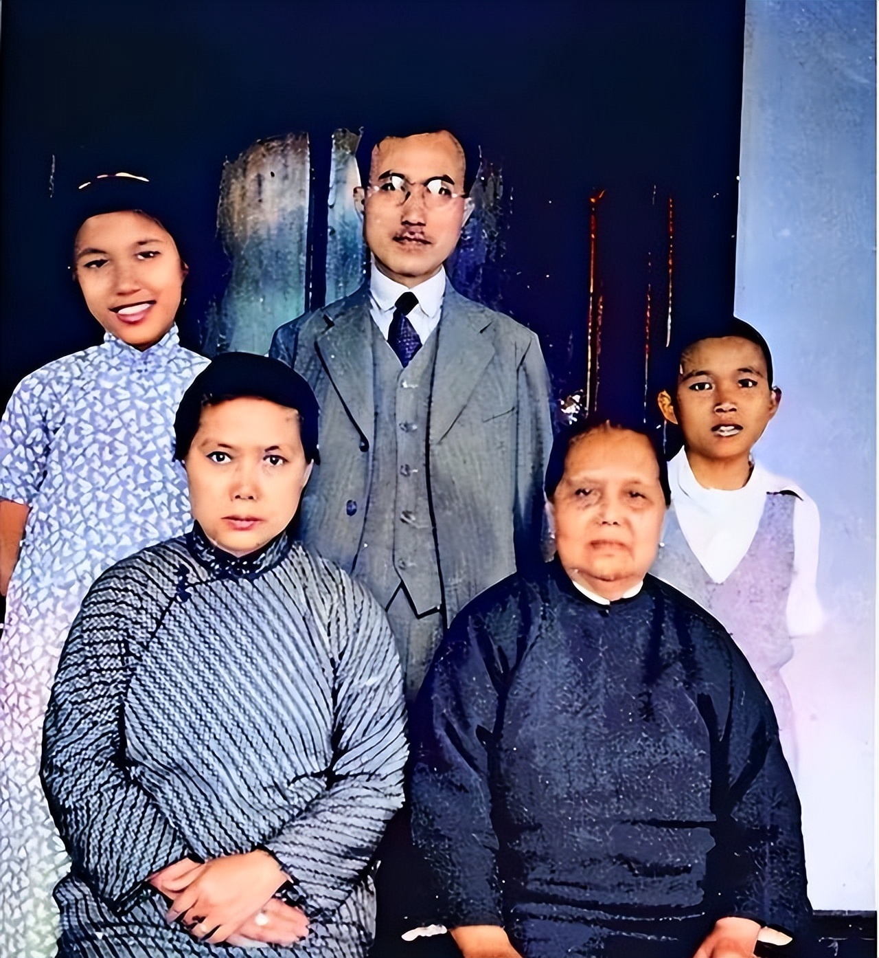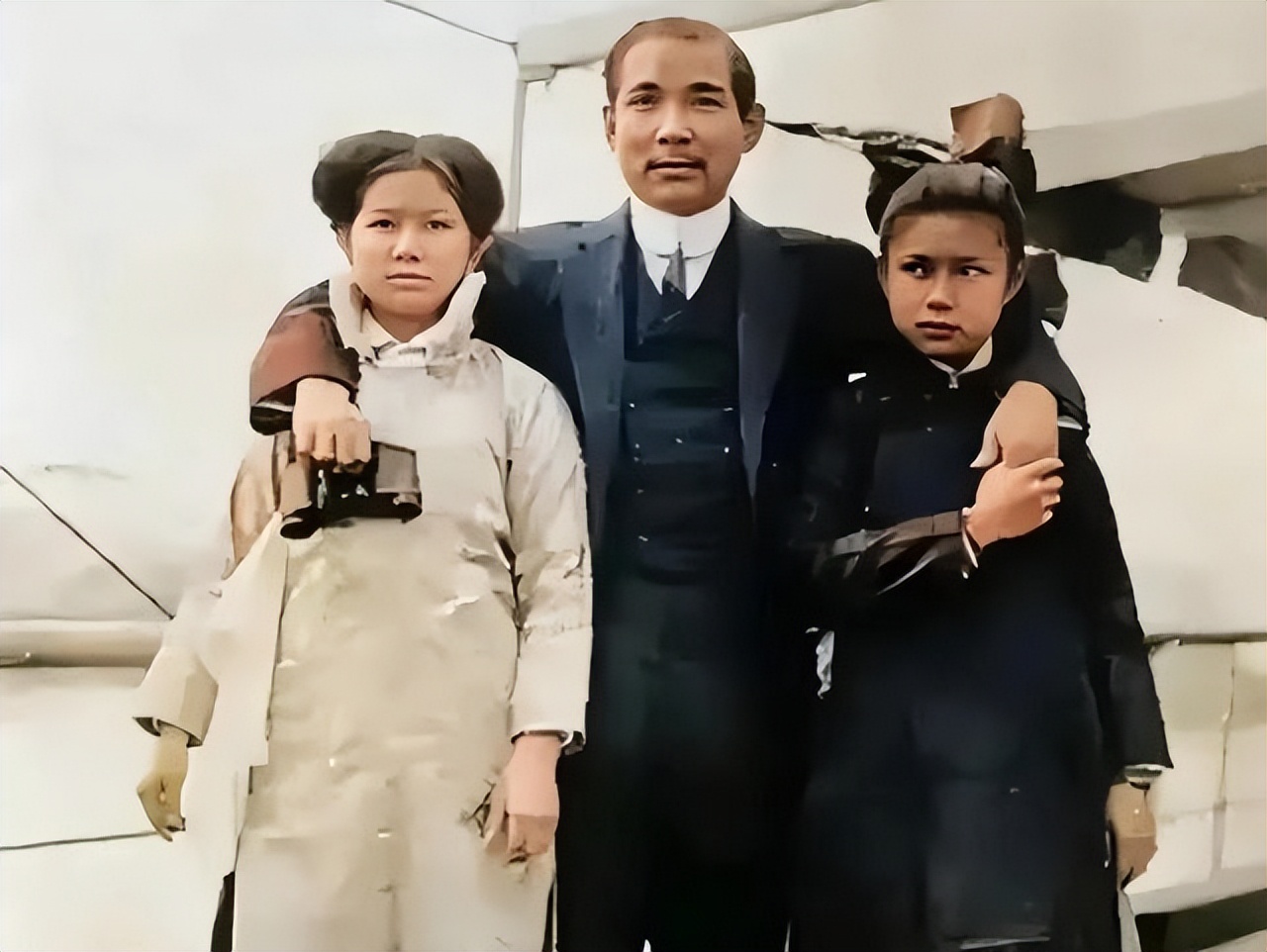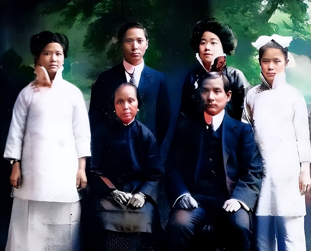 有几张老照片记录了卢慕贞在不同时期的样貌。一张是翠亨村居所前的家庭合影,她和孙中山以及子女家人站在一起,穿着传统衣服,样子朴实。另一张是1910年和三个子女的合影,那时候她面容显得疲惫,反映出流亡生活的实际情况。还有一张1912年在广州的家庭合影,她坐在中间位置,身边是子女,整体姿态稳重。这些照片里她的样子就是那个时代一个普通传统女性的真实记录,身材不高,头发梳理成当时常见的样式,衣着简单,没有过多装饰,表情自然平静。