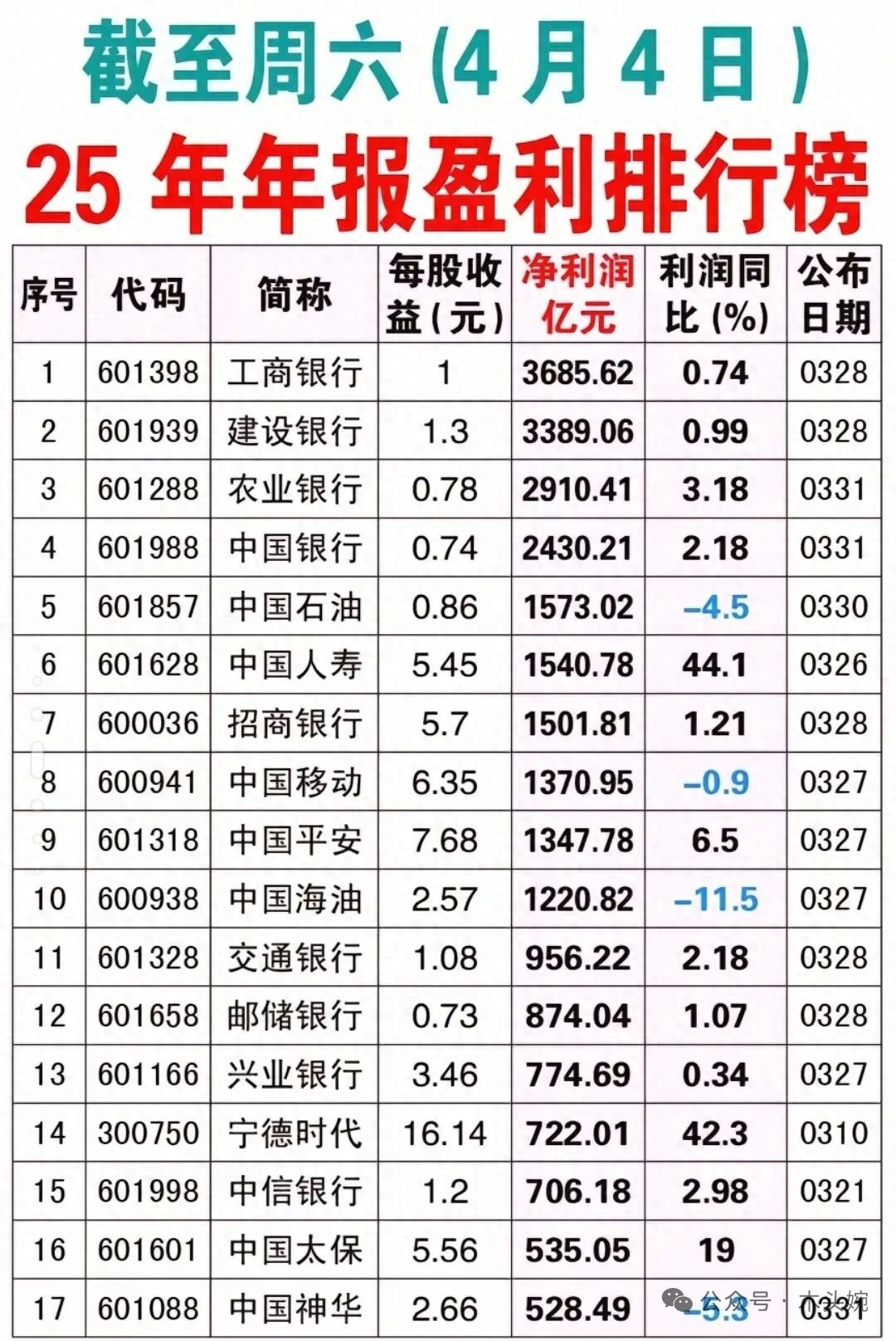 截至4月4日,2025年年报盈利排行榜重磅发布!工商银行以3685.62亿元净利润登顶,建行、农行、中行等国有大行包揽前四,“宇宙行”们的赚钱能力依旧稳如泰山。绩优高成长科技龙头有哪些?
