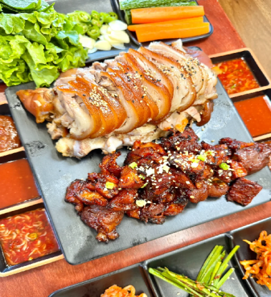喜欢韩式猪蹄的一定要来!!猪蹄炖得超级软糯用筷子一夹就能骨肉分离!配上生菜和蒜片卷着吃,香晕了