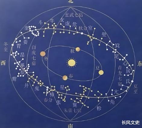 “井毕”“角亢星张” 则全是中国古代星宿名。“井毕”是二十八星宿中的井宿与毕宿,井宿属南方朱雀七宿,毕宿属西方白虎七宿,两者常并称以象征天文分野或时空跨越;