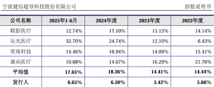 值得关注的是,在销售费用率及管理费用率方面,健信超导远弱于同行。同样,公司研发费用率也明显比同行要低。公司表示,同行业可比公司中联影医疗、奕瑞科技资金实力较强、研发产品线较多,使得研发费用率较高;辰光医疗、康众医疗收入相对较小,使得研发费用率较高。