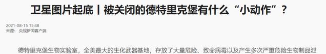 信息来源:央视新闻客户端--卫星图片起底丨被关闭的德特里克堡有什么“小动作”?2021-08-15