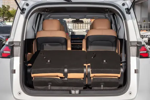 灵活的空间布局也是这台车的一大亮点,特别适合家庭使用。第三排座椅支持4/6比例放倒,放倒并前翻后,行李厢容积能扩展到1202L。有一次家里搬家,我把第三排座椅放倒后,轻松装下了3个20寸行李箱、2个28寸行李箱和1个折叠自行车,还有多余的空间放一些杂物。要是平时需要拉点大件物品,比如孩子的婴儿车、家里的洗衣机等,这个大空间就显得尤为实用了。车内还有25处人性化储物空间,贯通式储物盒可以放手机、钥匙等小物件,左右衣帽钩能挂衣服、包包,后备厢还有隐藏式挂物钩,平时买的菜、水果可以挂在上面,不会被挤压。超大尾门开口宽度最长有1164mm,造型圆滑平整,装卸大件物品的时候很方便,不用费劲地抬起来。