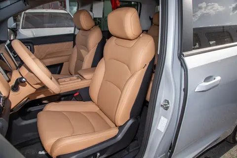 第二排是独立座椅,我家老人平时就坐在这里,腿部空间有超过一拳的距离,不会觉得拥挤。过道宽度有230mm,中间过道足够宽敞,家里的孩子可以轻松从中间走到第三排,不用费劲地挪动座椅。很多人担心7座MPV的第三排是“鸡肋”,但星光730的第三排空间利用率达到了88%,我坐进去试了试,头部空间接近一拳,腿部也有一拳左右的余量,并不会觉得特别局促。座椅坐垫宽度有1230mm,深度490mm,靠背还能调节到127°,上次带家里老人孩子去周边城市旅游,车程三个多小时,坐在第三排的孩子也没说不舒服。座椅用的是高厚度10mm复合皮面,触感细腻,支撑性也不错,平时弄脏了用湿毛巾一擦就干净,打理起来很方便。