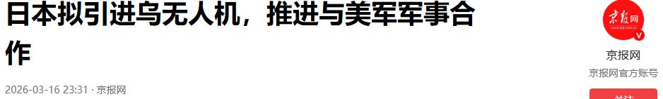 日本拟引进乌无人机,推进与美军军事合作-2026-03-16 23:31-京报网