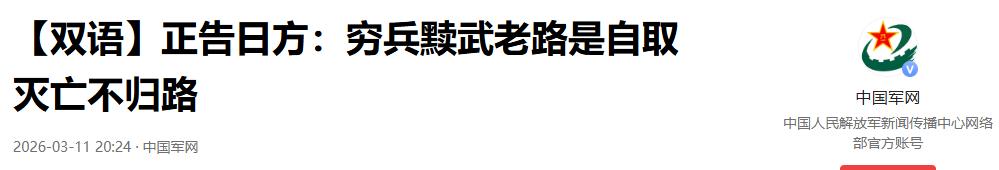 【双语】正告日方:穷兵黩武老路是自取灭亡不归路-2026-03-11 20:24-中国军网