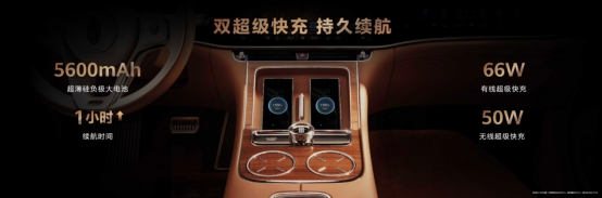 续航与性能方面,该机搭载5600mAh硅负极大容量电池,厚度仅1.9mm,兼顾了纤薄机身与持久续航。支持66W有线超级快充、50W无线超级快充和7.5W反向充电,轻松应对全天使用需求。