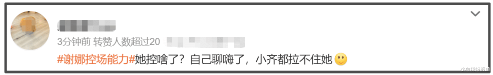 有网友认为谢娜自带综艺感,有超强的社交能力,是气氛粘合剂,这种人多的场面就靠她撑住。但也有人批评没有控场能力,舞台上自己聊嗨了,身边的小齐都拉不住她。
