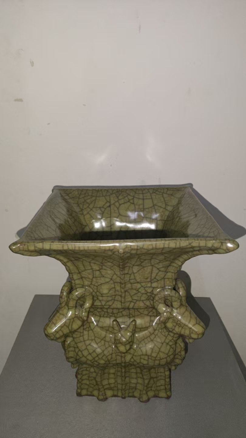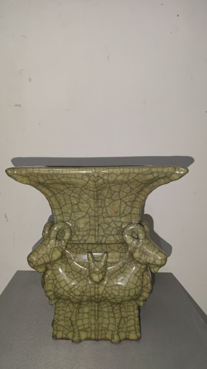官窑开片四羊方尊,是宋代瓷艺与上古青铜文明的共鸣。它承载着官窑的工艺智慧,诉说着四羊的吉祥祈愿,更见证着中国陶瓷在传承中创新的生命力。