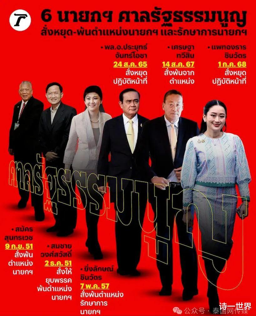 据《泰叻报》报道,2008 - 2025年短短17年内,已有6位泰国总理遭到宪法法院暂停或解除职务。除巴育上将幸免外,其他5位总理沙马(他信密友)、颂猜(他信妹夫)、英拉(他信幺妹)、赛塔(他信大徒弟)、佩通坦(他信幺女)均是他信系总理。从9 : 0的投票结果来看,参照泰国以往历史经验,佩通坦凶多吉少。