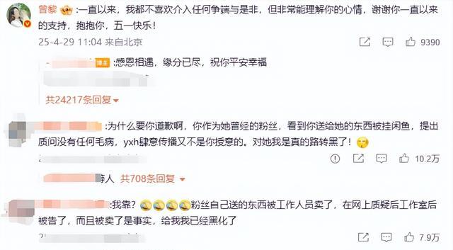 粉丝多方联系看不到,事情一出,发表声明说是工作人员失误,咸鱼账号上售卖那么多物品,自己没发现吗?一出事就工作人员背锅,真是“洗的一手好锅”。