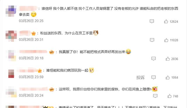 本以为是双向奔赴,令人没想到的却是“两面派”,表面对粉丝的礼物表示喜爱会好好珍惜,转眼就将粉丝礼物放到咸鱼,进行售卖,简直就是将粉丝的真心扔到地上摩擦。