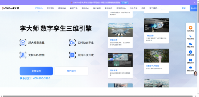 其 “零代码 + 低代码” 双轨模式,让用户无需编程即可完成复杂工业场景搭建,同时支持 BIM、GIS 多源数据融合,在飞机引擎维护、军事推演等场景中实现高仿真虚实映射。