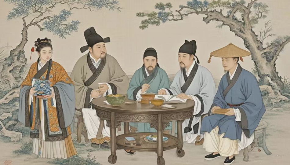 大家落了座,大女婿举人心里很瞧不起王小路,就想为难他一下,说道:“正值佳节,咱们不妨作诗答对,让老泰山出上联,咱对下联,对得出的吃菜,对不出的喝酒。”二女婿秀才也跟着附和:“这个主意好。”王财主也上过几年私塾,有点墨水,就说道:“江河湖海都有水。”这对子看似简单,其实暗藏玄机,前四个字都有个水字旁,还得押韵呢。王财主说完,就赶紧把两个大鹅腿夹到了自己碗里。大女婿举人头一扬,说道:“魑魅魍魉四小鬼。”说完就把两鸭腿夹到了自己碗里。二女婿秀才马上说:“吃喝吹唱皆张嘴。”说完把两鸡腿夹到了自己碗里。轮到王小路了,他大字不识一个,急得满头大汗,肚子又饿得咕咕叫。他一伸手把鸽子腿薅下来,说道:“鸡鸭鹅鸽象鸟腿。”王财主一听,这不是在说我买的东西小嘛,脸一下子就拉了下来。王小路媳妇玉香却高兴地说:“对得好,没毛病,都有鸟字旁”。