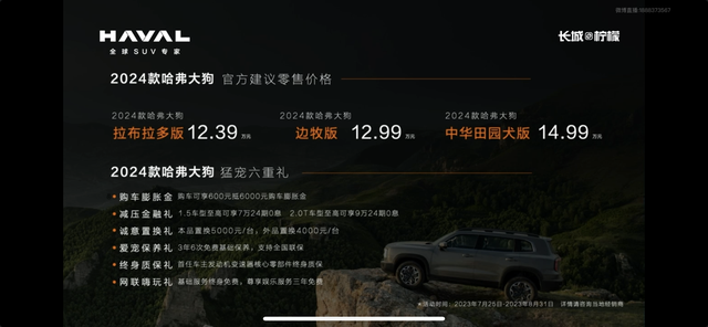 当然对于一款强调硬派感的车型,虽然是承载式车身,但仍增加了带有中央差速器和后差速锁的四驱版本可供选择,有着不错的通过性。最后,则是对配置和价格方面的调整,新车取消了此前最入门的哈士奇版,直接以拉布拉多版为起步,同时对应的价格降低了6000元,配置方面也有一定的更新,不算全面提升,还是有一定的取舍。2024款比此前的22款升级了19英寸轮毂,但减少了前后头部气帘,增加了电动后备箱,但减少了LED雾灯和辅助转向灯,扬声器数量也有所消减,总体应该说性价比还是有一定的提升。其他几款车型也大同小异,未来能有怎么表现,非常值得期待。