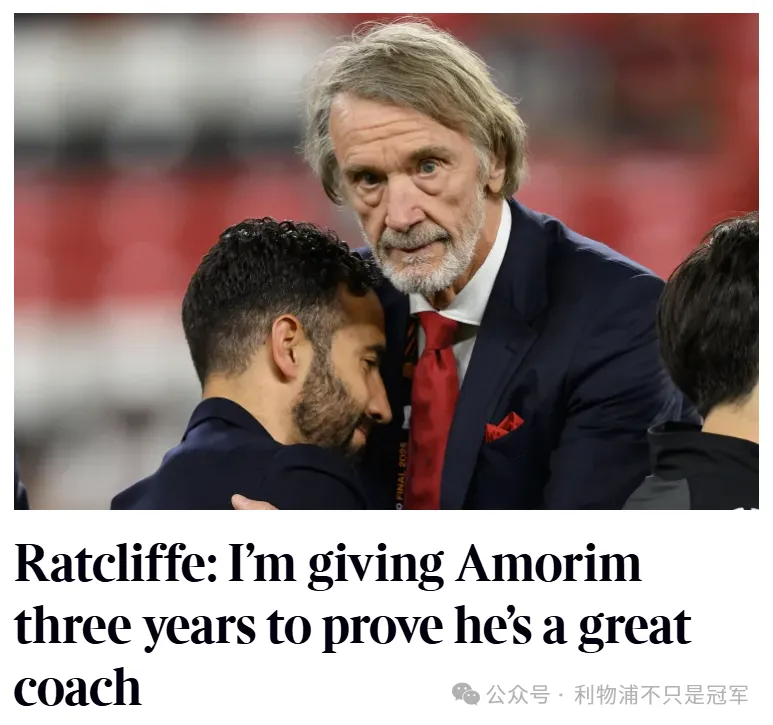 今天很多英国媒体体育版的头条都是:曼联老板拉特克利夫表示,将给主帅阿莫林3年时间证明自己。