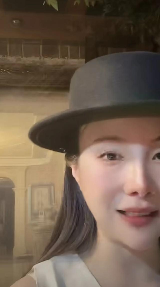 镜头中,她戴了一顶黑色的礼帽,留着披肩长发,五官变化太大了,和年轻时判若两人,完全认不出来。