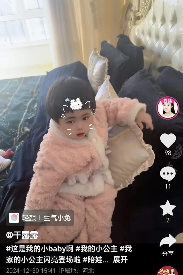 2024年12月,干露露在视频中曝光了女儿的近照,女儿确实长大一点了,像三岁小孩。