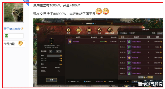 说起来,买卖玉佩碎片的差价就已经让大家感受到炒股的乐趣,鉴定玉佩更是心情比过山车还刺激。有玩家表示自己想切玉佩自己玩,没想到切了一天玉佩,倒赚了8900万(按金价相当于1.8万人民币左右)。