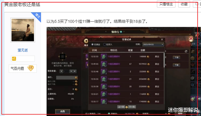 本来以为自己倒卖玉佩大赚了一笔,没想到当天晚上又有大佬扫货,玉佩碎片直接涨到了19万的价格,这已经翻了快3倍的价格!