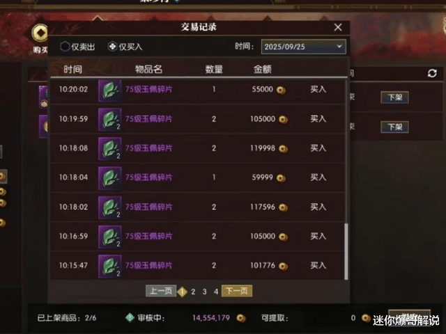 玉佩作为装备的一部分,除了基础属性外,每一刀切下去都会有随机的不同词条出现,也被大家称为一刀穷,一刀富。为了满足大佬切玉佩的需求,有商业头脑的玩家提前以5.5万的价格购入了100个玉佩碎片: