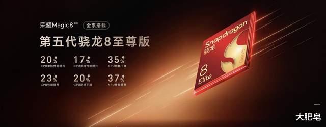 荣耀Magic8全系搭载年度最强旗舰芯片第五代骁龙®8至尊版,CPU、GPU和AI算力相比上一代都有大幅提升,性能跑分具有领先跨代表现。荣耀与高通自2022年成立了联合实验室,共同深耕新一代AI与芯片底层技术,针对芯片的各个模块定制专属优化引擎,实现超高芯片使用率。