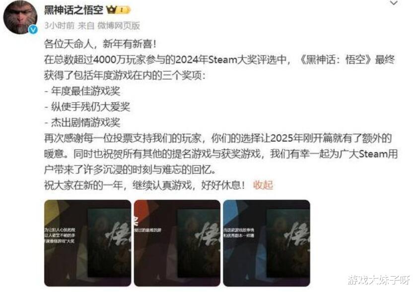 这件事发生后,大量网友在吐槽,在吐槽声中,最近steam年度大奖评选结束,大家看到《黑神话》获得最佳游戏奖,4000万玩家参与,话语权在玩家手中。