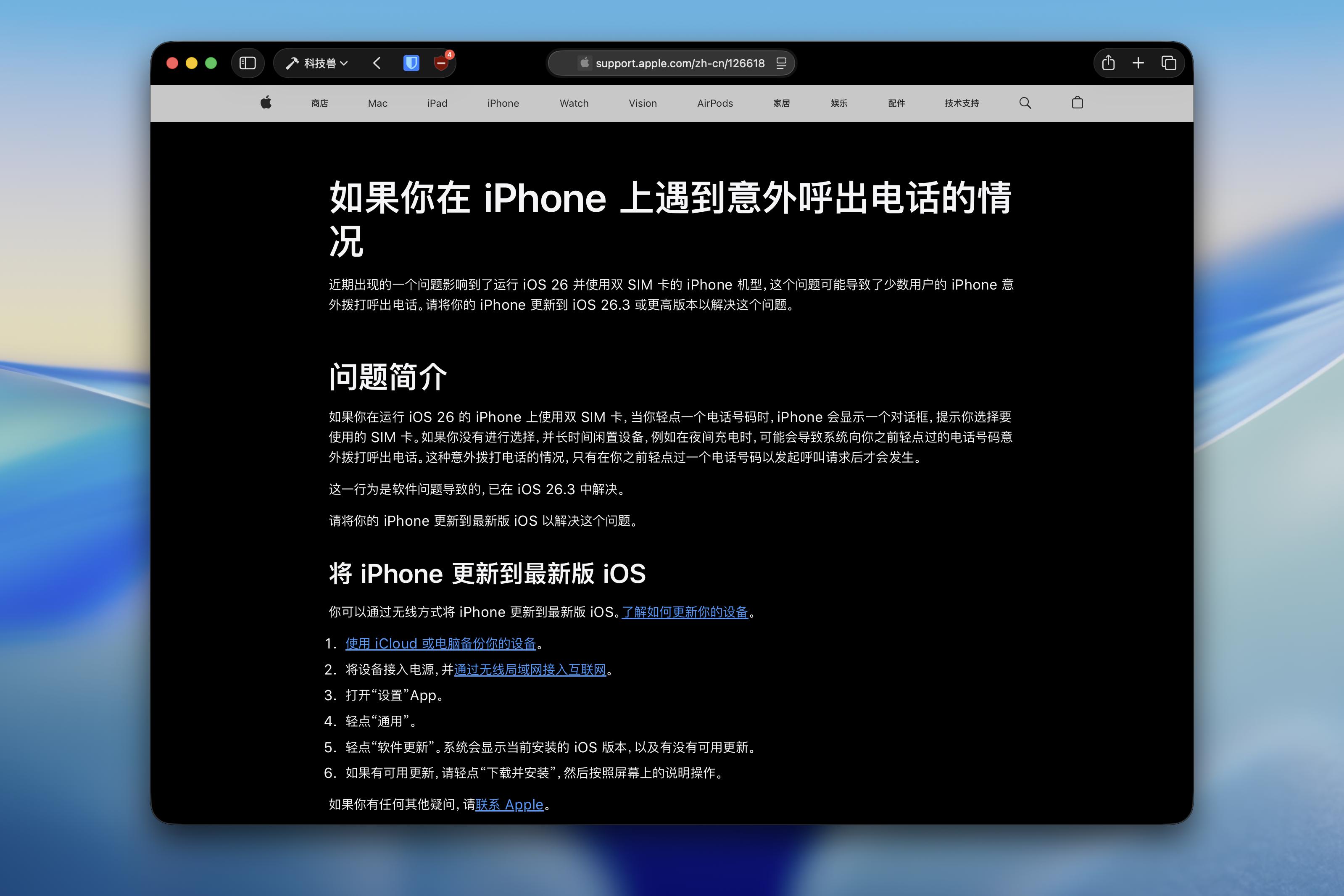 苹果表示,该问题主要影响运行 iOS 26 且使用双 SIM 卡的 iPhone 机型,可能导致少数用户出现意外拨号的情况。