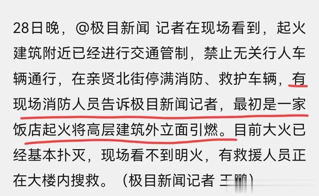 (本文根据央视新闻及现场消防员透露信息整理,事故具体原因以官方最终通报为准。)