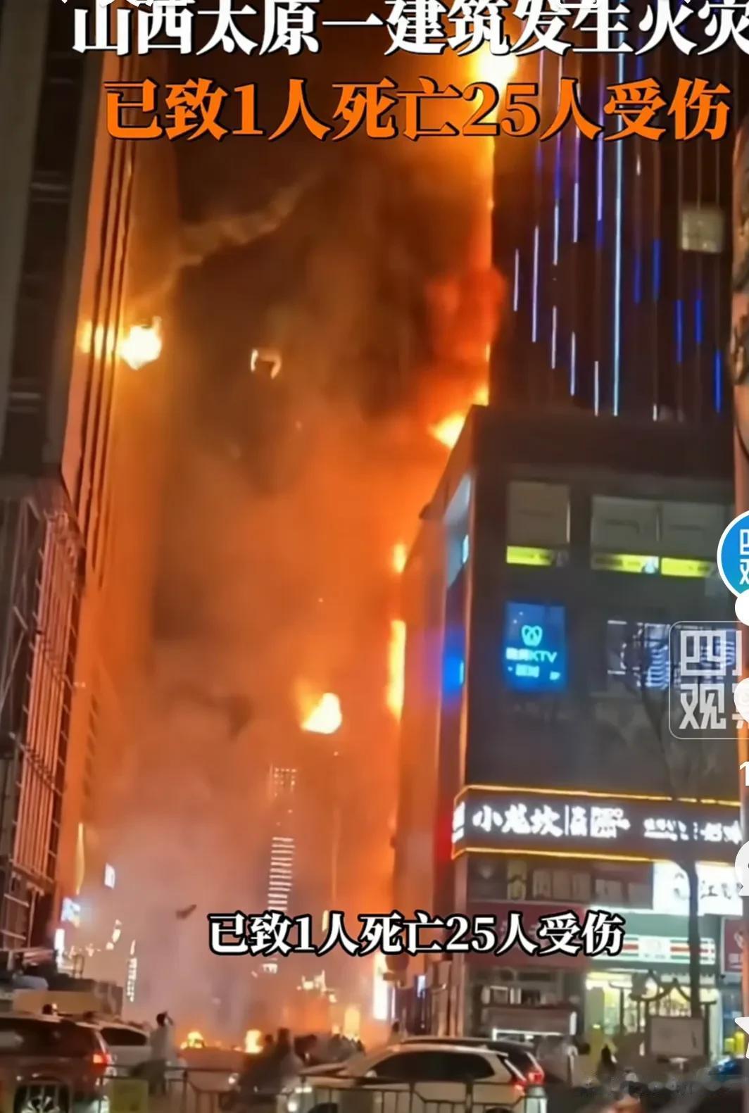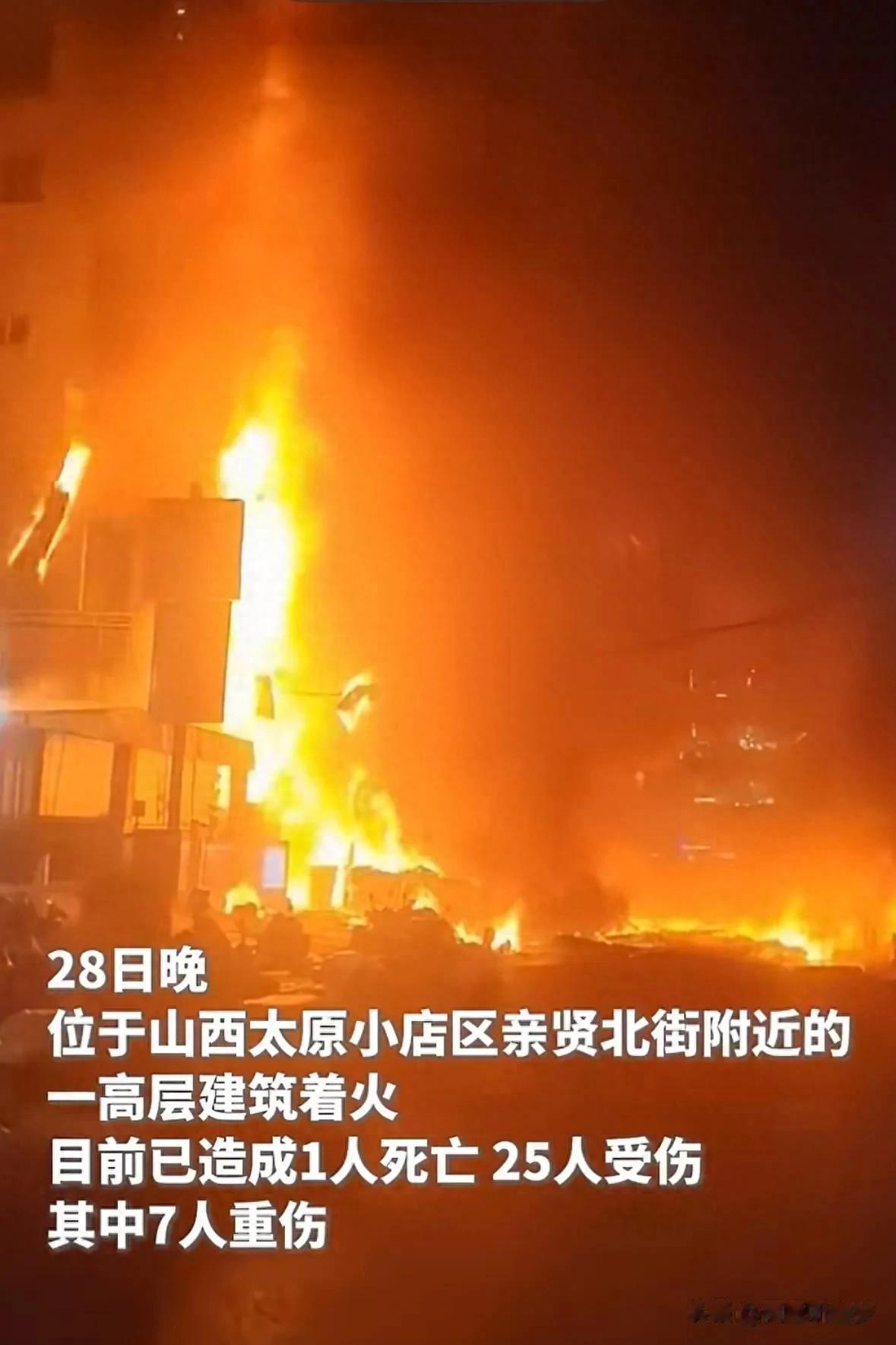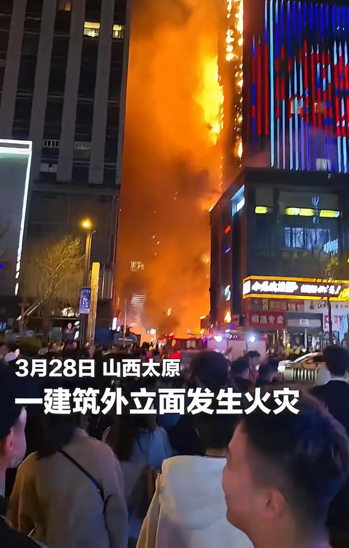 今晚8时许,山西太原,一栋高层建筑在夜幕中烧成了一根“火柱子”。