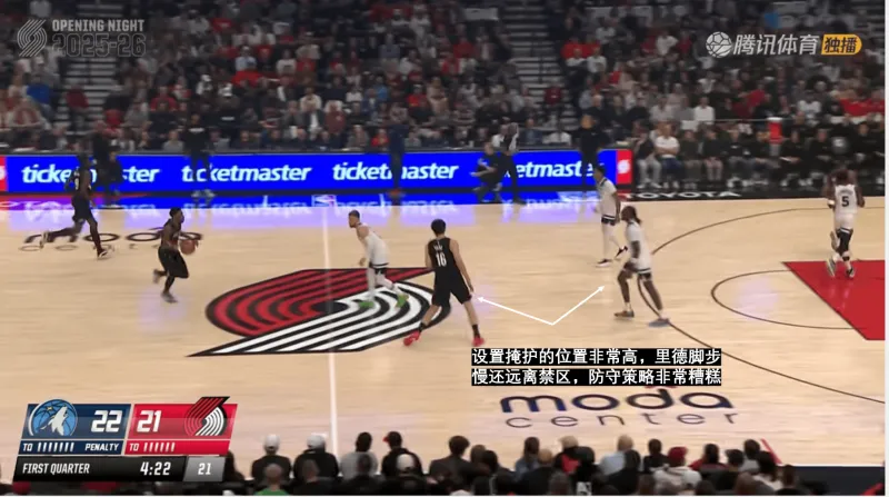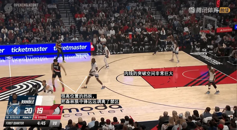 当季前赛瀚森一次次被对手的射手中锋弄得无法安稳待在禁区时,我们就曾提出面对这种情况用错位防守会是更好的方式,因为拥有柔和手感的射手中锋普遍没有内线强打的能力、更适合用速度快的锋线去防,此时中锋可以防一个非空间点同时兼顾护框,常规赛第一场开拓者果然用出了这招。