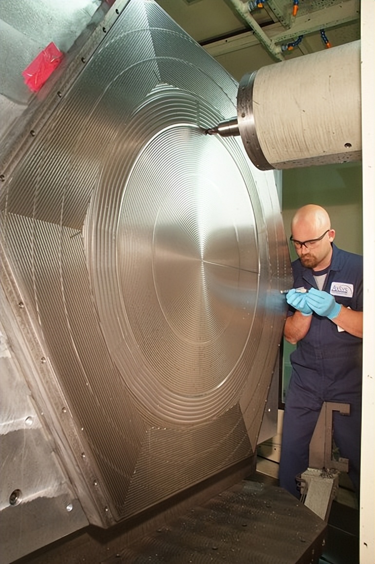 其次,加工精度要求极高,镜坯需要铣削出600个背面凹腔,其肋板厚度最小仅0.021英寸,换算过来大约0.53毫米,且公差必须控制在±0.0002英寸,也就是约5微米以内。这对加工设备的体积精度和长期稳定性提出了近乎变态的要求。