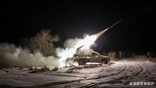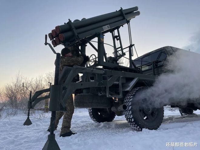 俄乌冲突冬季战场上,一名乌克兰士兵操作车载多管火箭炮系统。这是乌军改装的多管火箭炮发射车,采用民用卡车底盘搭载多联装火箭弹发射管,属于前线应急改装的低成本火力支援武器,用于对俄军阵地实施面状火力打击。