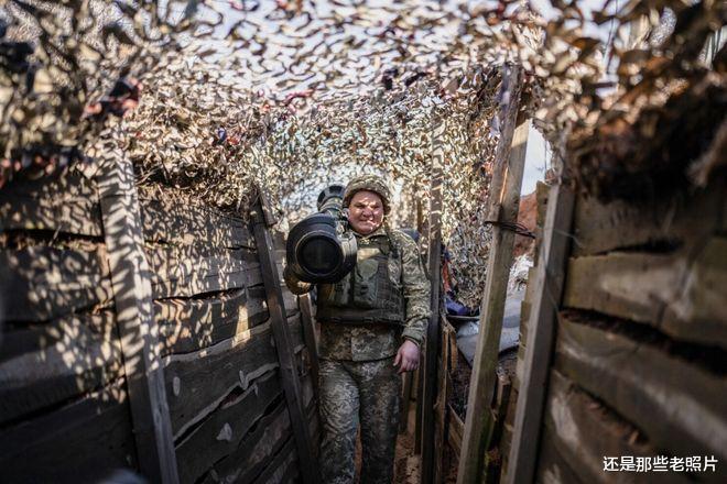一名乌克兰反坦克手在伪装战壕中,肩扛标枪(FGM-148 Javelin)反坦克导弹,这是西方援乌的核心单兵反装甲武器,也是乌军对抗俄军装甲集群的关键装备。
