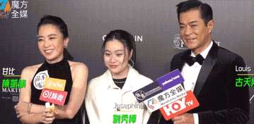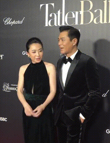 甘比和古天乐在红毯上甜蜜互动,甘比在古天乐脸上比心,古天乐被甘比逗笑了,他们俩的关系很亲密。甘比是个可爱的女人,她在红毯上很明亮,古天乐一扫阴郁的脸色,笑起来的古天乐更帅气了。