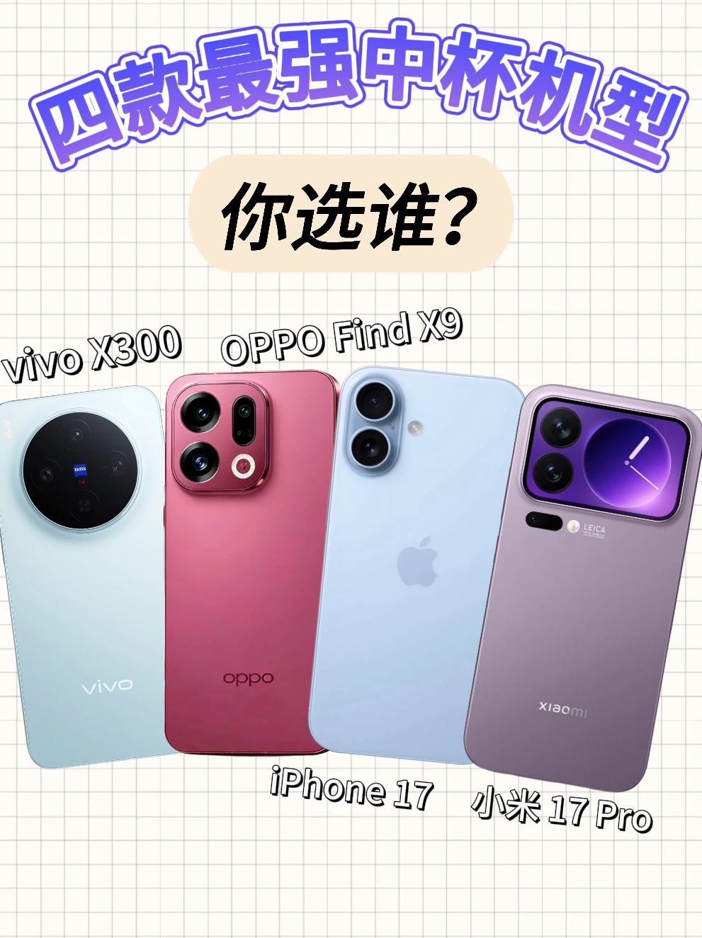#安卓 #中杯手机 #影像旗舰 #续航 #手机选购攻略#vivoX300 #OPPOFindX9 #iPhone17 #拍照手机#小米17Pro