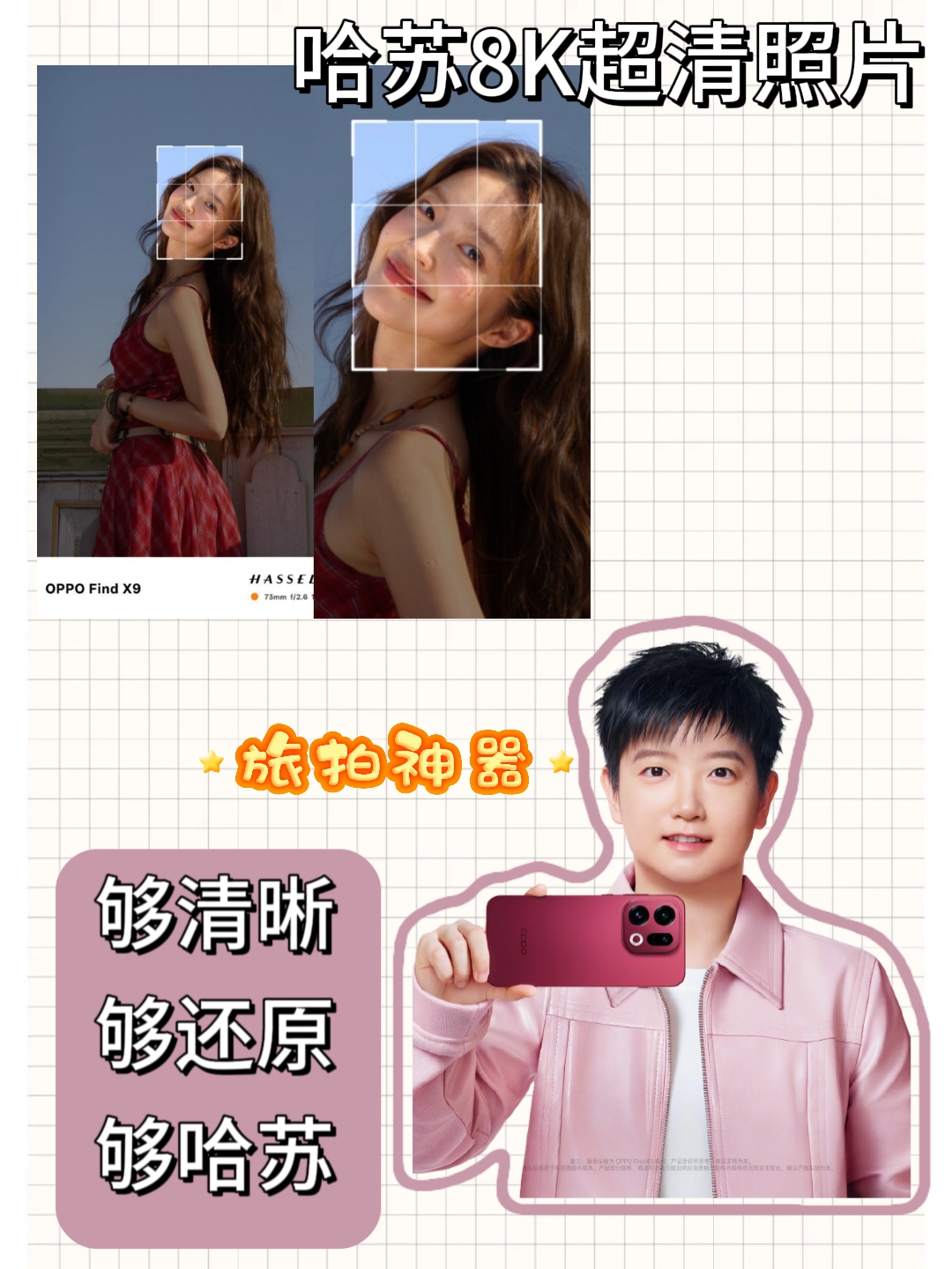 在影像上安卓更是降维打击。vivo的2亿像素+LYT-828已经够能打,但OPPO直接把哈苏四摄做到中杯里,普通模式就能直出5000万像素照片,随手就能出大片,还有8K超清照片和4K高清Live图,放大和裁切都清晰。还有丹霞还原镜头、哈苏XPAN模式、变焦闪光灯等,不愧是是莎莎亲证的“旅拍神器”