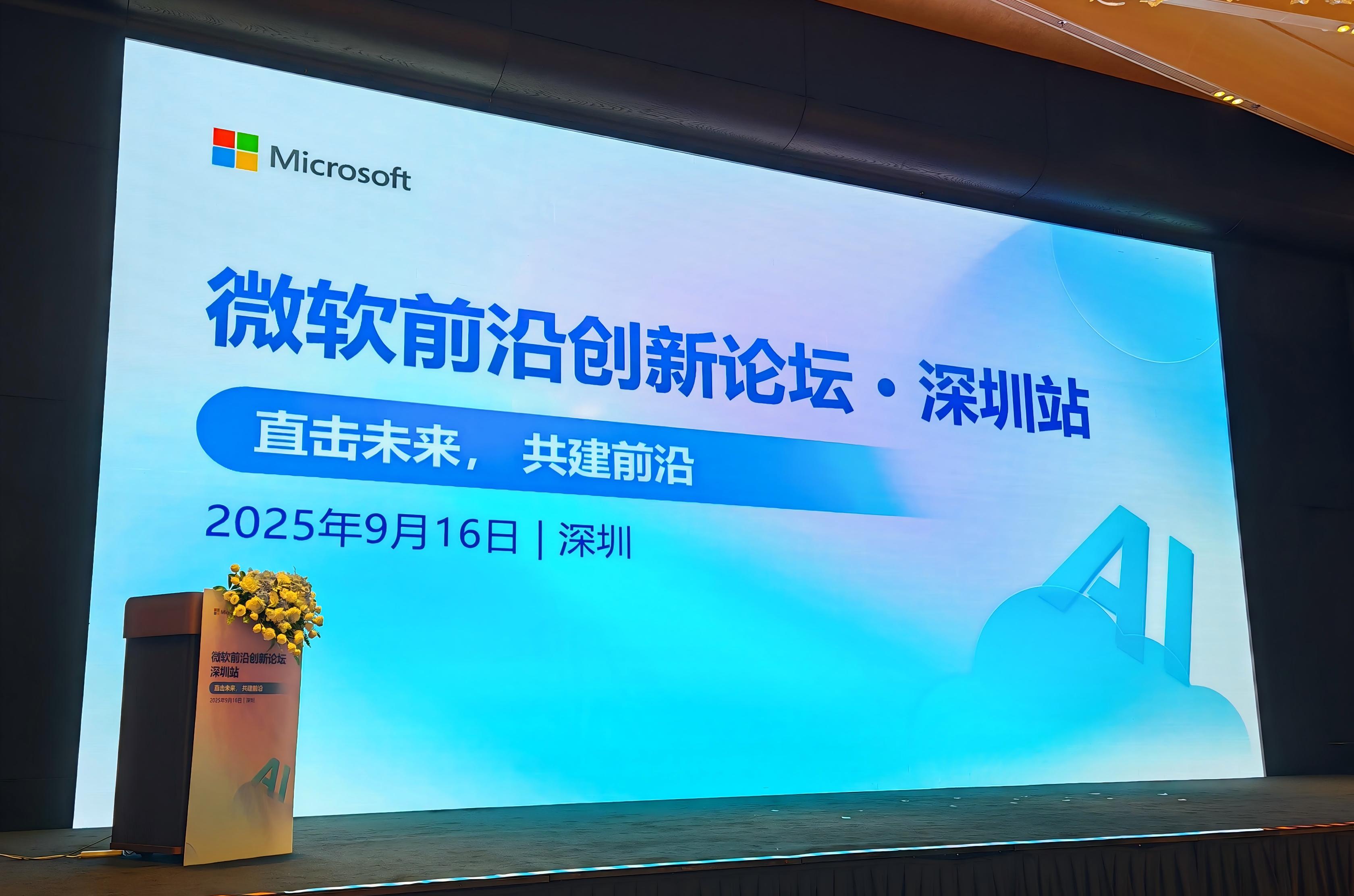 2025年9月16日,深圳这座创新之城迎来了一场企业智能化领域的巅峰盛会——微软前沿创新论坛。作为年度最具影响力的行业盛会,本次论坛汇聚了制造、零售、数字原生等领域的顶尖企业与专家,共同探讨智能化转型的破局之道。